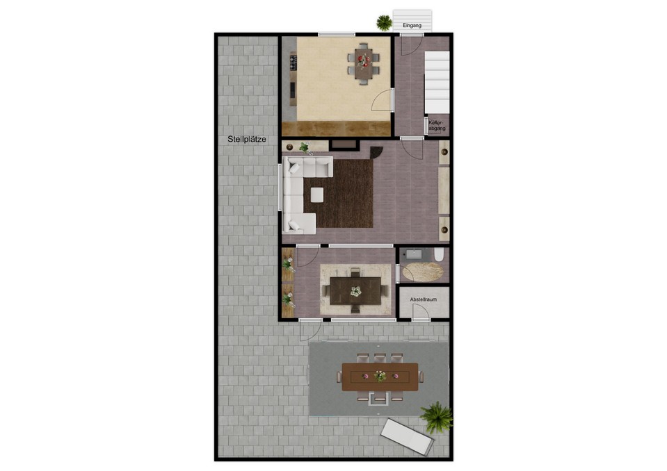 Neben dem Haus, in dem perfekt gestalteten Innenhof, befinden sich die Stellplätze die Sie durch das moderne, elektrische Außen Rolltor befahren können. Zwei Autos finden hier spielend Platz. Das Grundstück ist in Gänze eingefriedet und Ihre Kinder können sicher in diesem herrlich gestalteten Garten spielen.