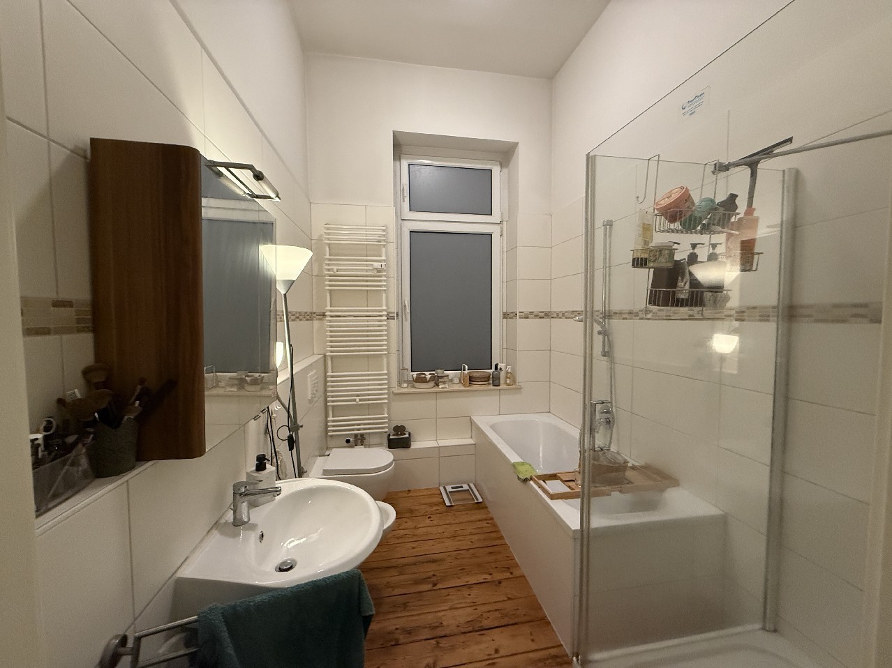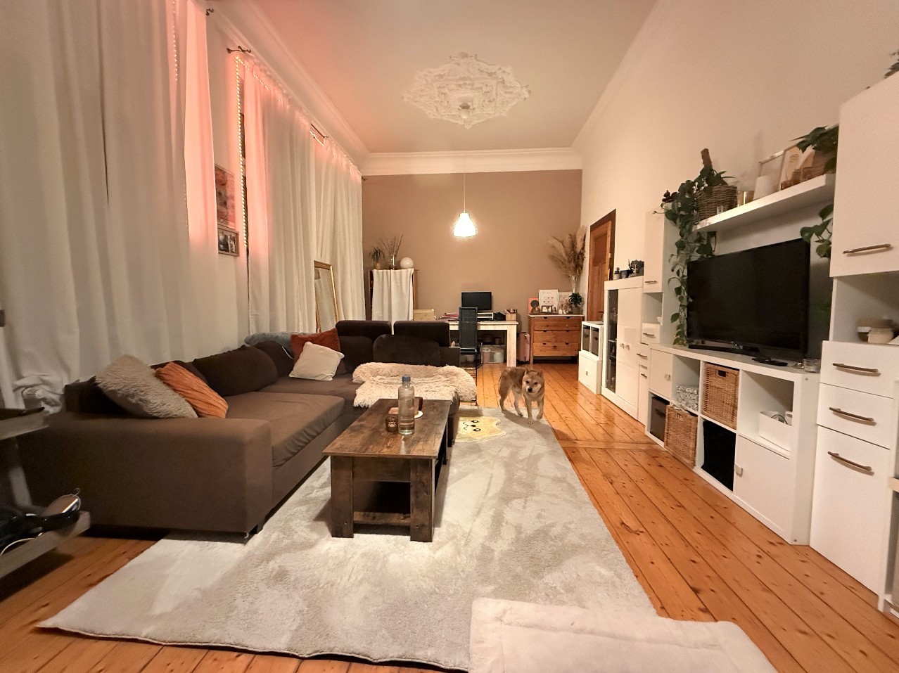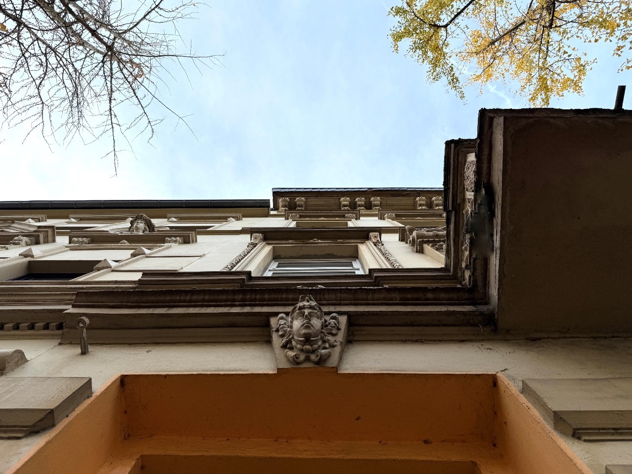 Die wundervolle Gründerzeit verkörpernd, präsentiert sich dieses Haus in historischem Gewand und weiß seinen Charme zu versprühen. Aus der späten Gründerzeitepoche stammend, hauchten die aufwendigen, verspielten Dekore und die Gebäudegestaltung diesen Häusern Leben ein. Ihr erster Blick wird auf die wunderschöne Fassade, umspielt von einer Ginkgo-Allee fallen. Diesem Charme kann man sich nicht entziehen. Zwischen den stattlichen Ginkgo-Bäumen befinden sich die quer zur Fahrtrichtung angelegten Parkplätze, wie aus alten Zeiten. Wenn Sie das Haus betreten, werden Sie in eine andere Zeit versetzt. Selten empfängt ein Haus seine Anwohner mit solch positiven Schwingungen. Die original Gründerzeitfliesen im Hausflur sind umspielt von den in warmen Holztönen daherkommenden Originaltüren und Zargen. Wie ein Monument thront die wundervoll gearbeitete Holztreppe inmitten des nostalgischen Baukörpers, um seine Bewohner in Ihre Wohnungen zu geleiten. Ton in Ton mit den Wohnungstüren liegt der wunderschöne Holzdielenboden unter Ihren Füßen. Dem Baustil gerecht werdend, beleuchten wunderschön getönte Messing-Glas-Wandlampen jede einzelne Wohnung. Die gut erhaltenen Stuckornamente bilden den lebendigen Rahmen dieser Zeitkapsel.