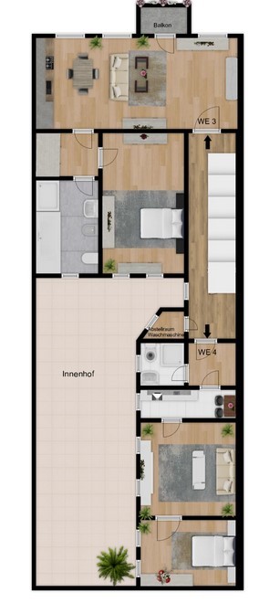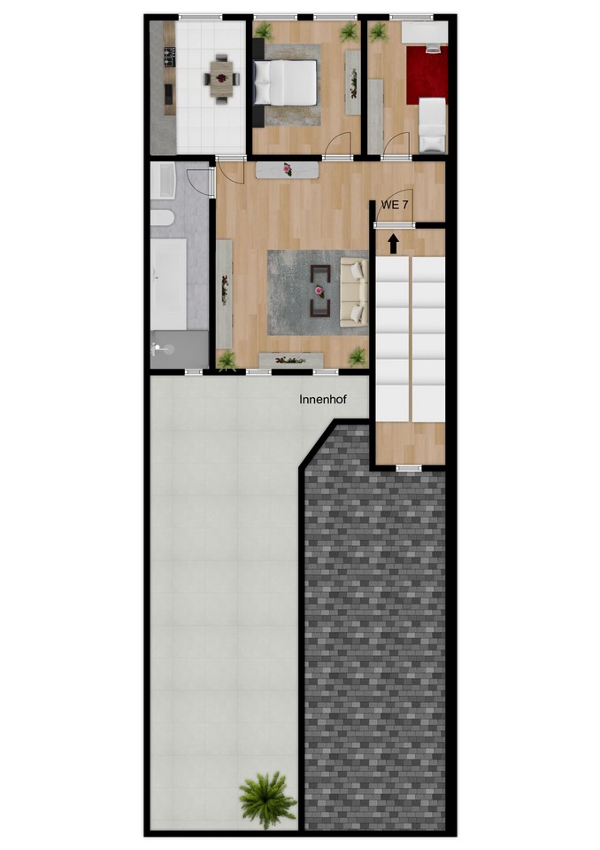 – Abstellräume mit Waschmaschinenanschluss für die hinteren Wohnungen