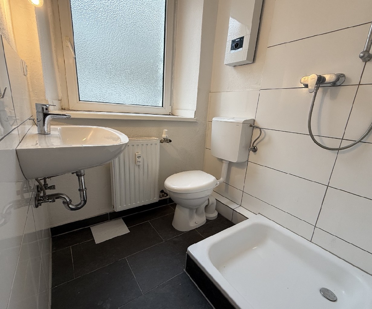 Erdgeschoss hinten: ca. 37 m², 2 Zimmer, Bad neu, Wohnung modernisiert Ende 2025.
